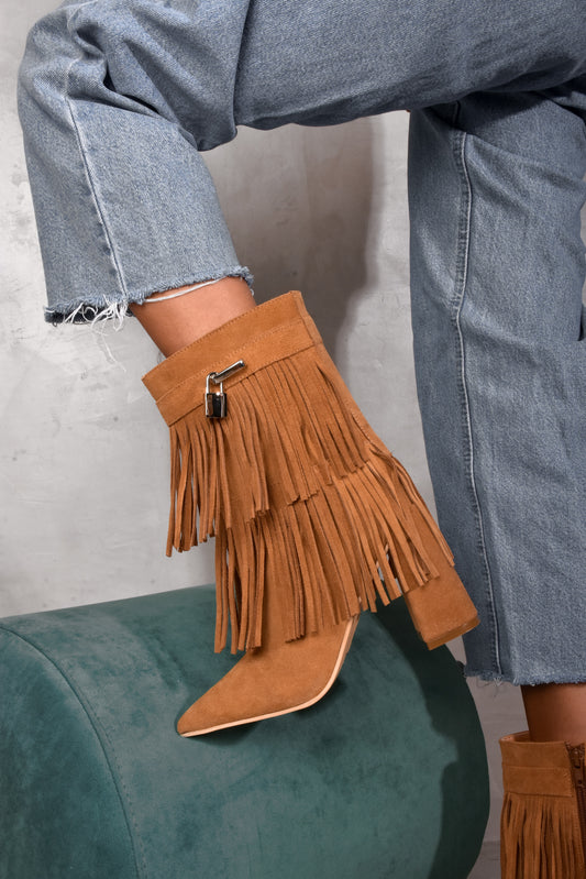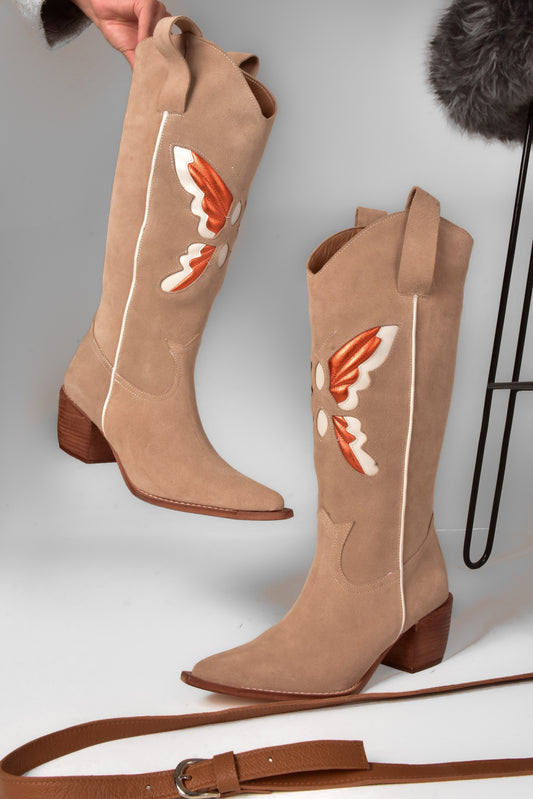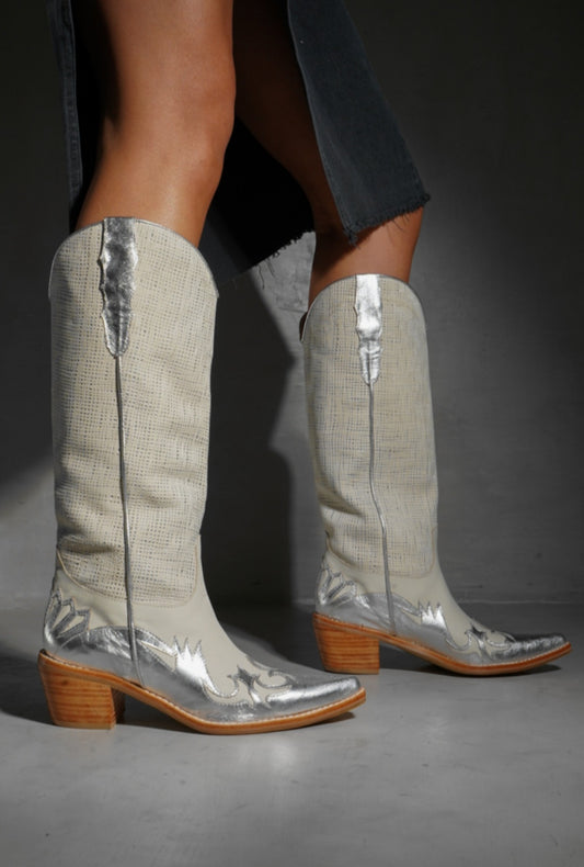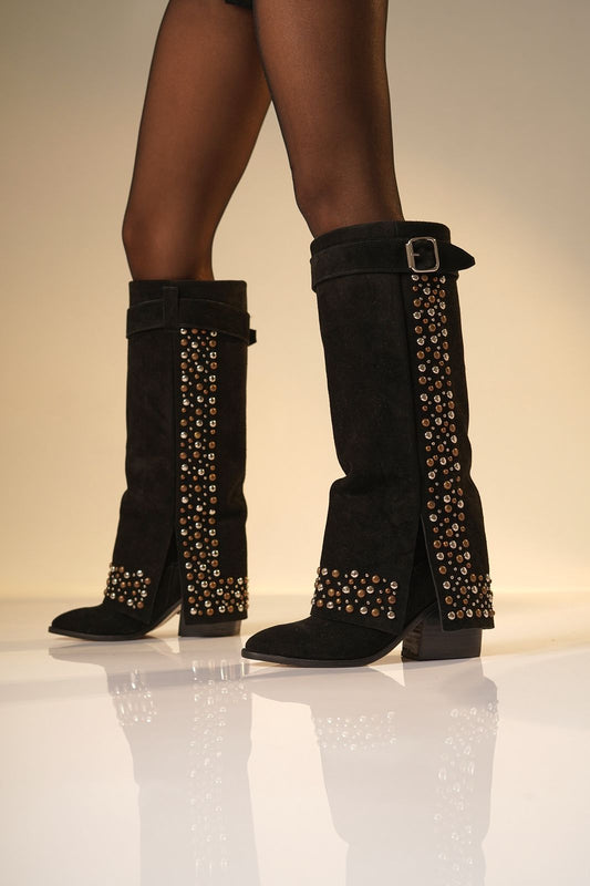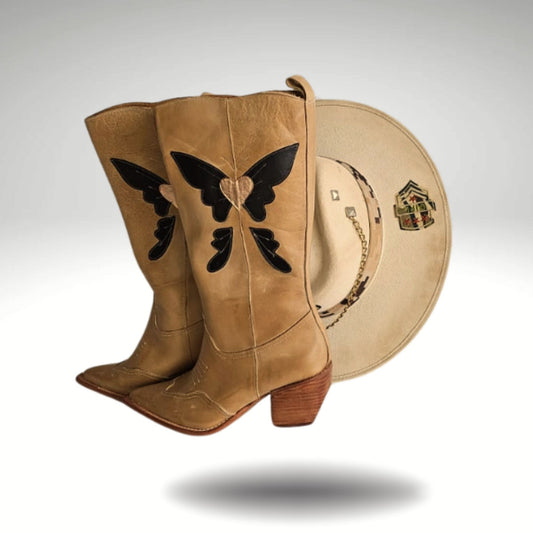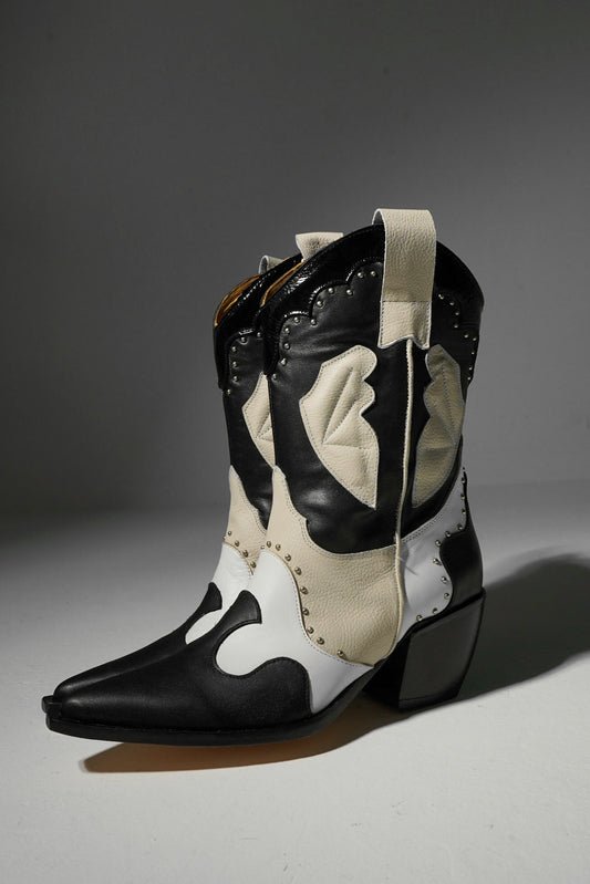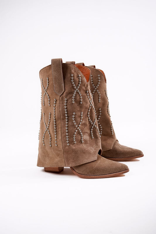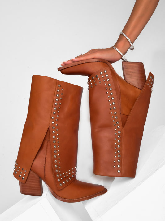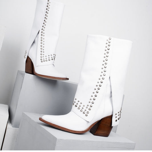 Bota Polta Cuero Natural Suela con Rockeras Tachas.