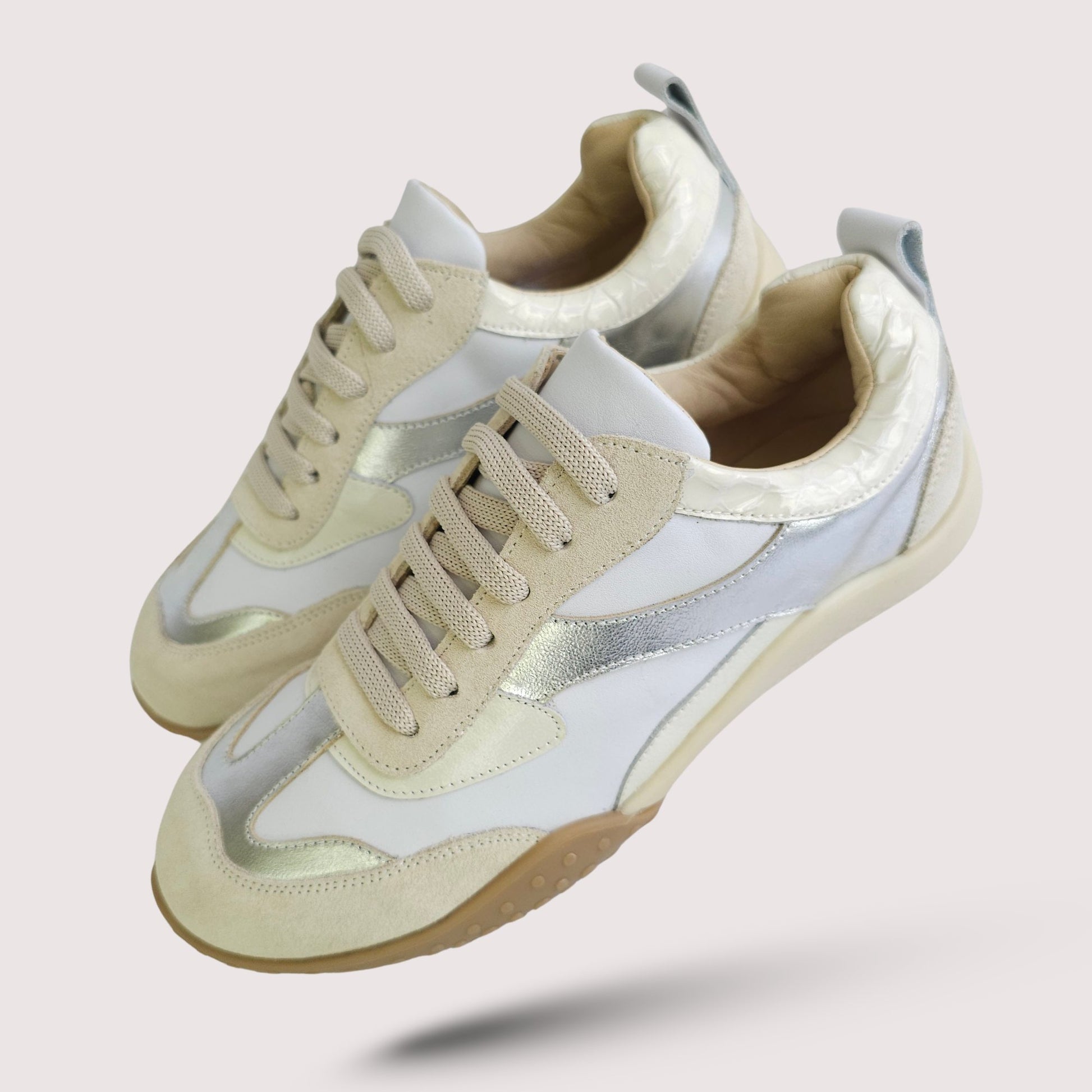 Inspirada en el diseño italiano contemporáneo, esta zapatilla combina líneas limpias, tonos neutros y materiales nobles para lograr un estilo atemporal, sofisticado y ultra versátil.